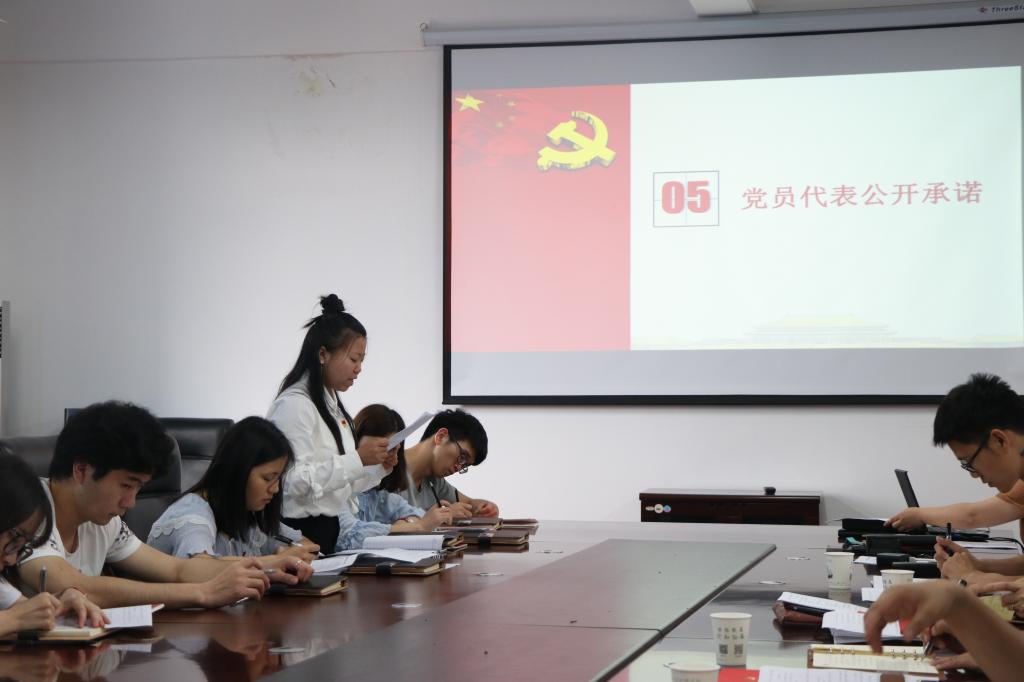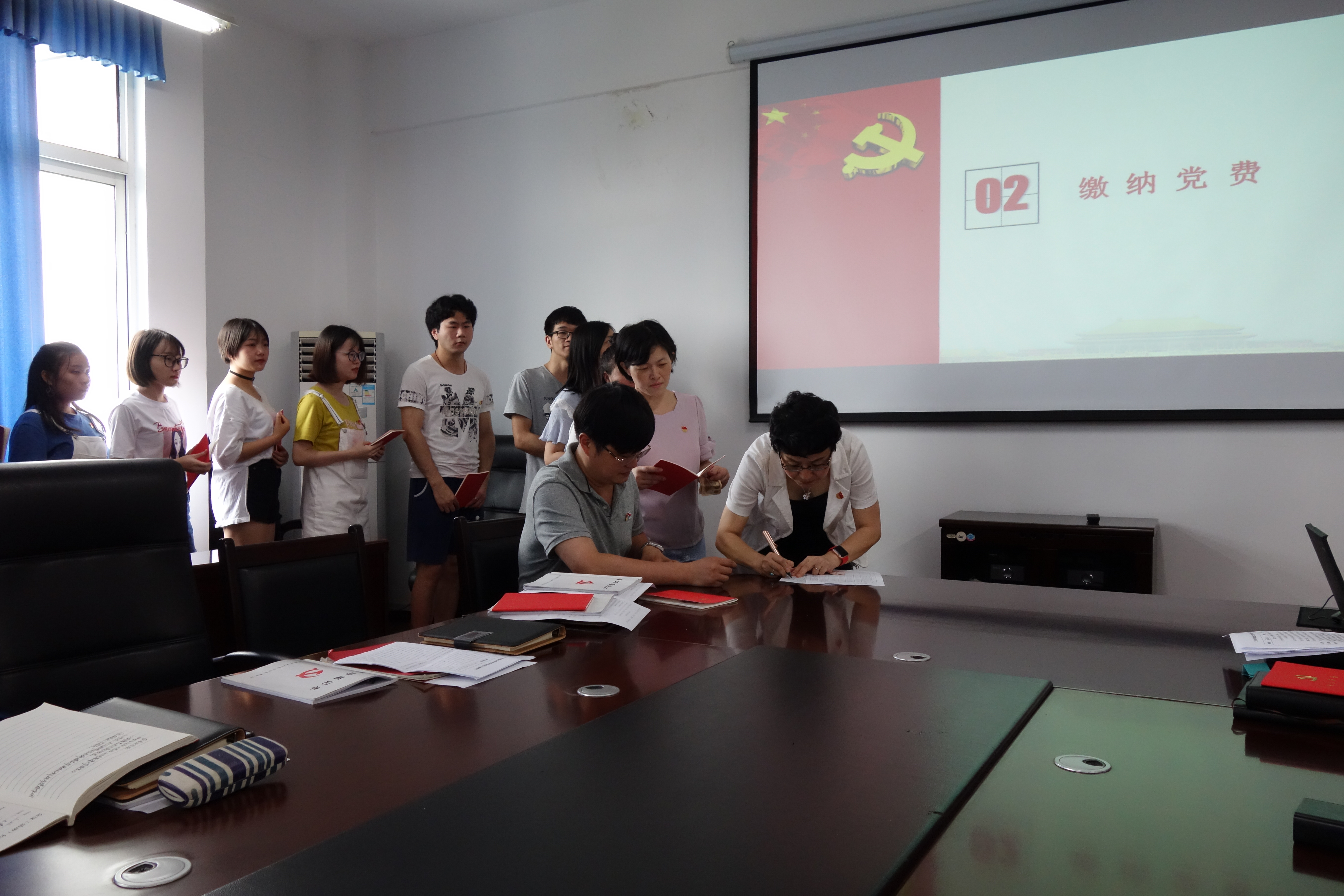 按照主题当日活动安排,全体师生党员重温入党誓词,现场缴纳党费,集体诵读党章,师生党员代表宣读了公开承诺书。