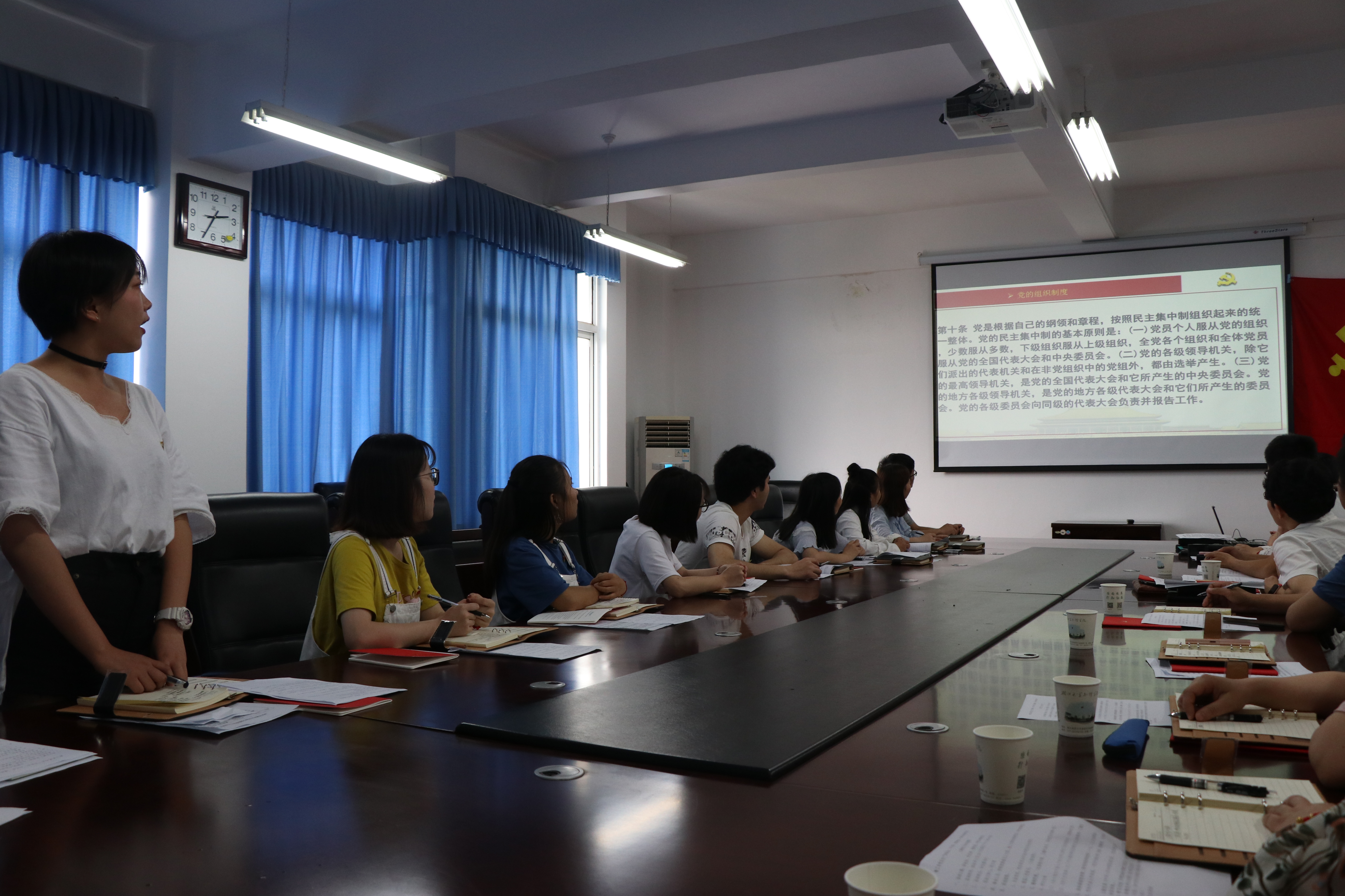 为了深入贯彻习近平新时代中国特色社会主义思想和党的十九大精神,进一步推进''两学一做''学习教育常态化制度化,全面落实新时代党的建设总要求,5月25日下午,我系党支部开展了以“讲政治、守纪律、懂规矩、争做合格党员”为主题的党日活动,活动由系党总支书记祝方清主持,学院党委委员王文凯出席活动并进行指导点评。