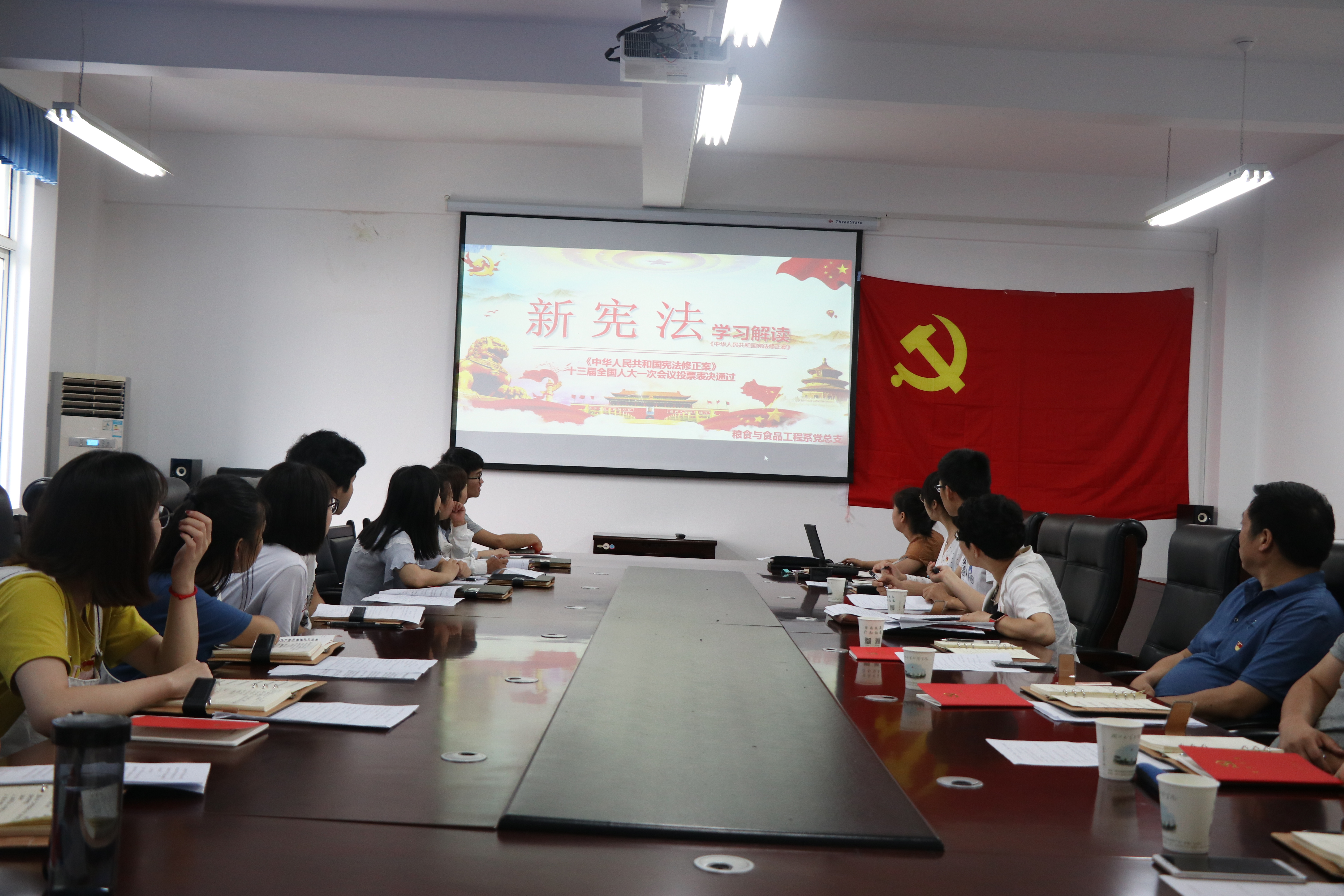 为了进一步加强对宪法的学习,培养广大师生遵法守法学法用法的浓厚氛围,系党总支书记祝方清带领所有党员共同学习了《中华人民共和国宪法修正案》的相关内容,让大家对宪法修正的内容和意义有了更深的了解。此外,会议还传达学习了《学院2018党建工作要点和学院党委书记彭德忠在党务工作会上的讲话精神,并就如何发挥党员先锋模范作用和支部战斗堡垒作用进行了讨论交流。