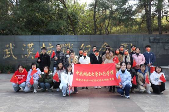 在保卫大武汉中国空军墓园前缅怀在世界反法西斯战争中最壮烈的武汉保卫战中血染长空,泪洒草木的英烈。随后在武汉抗战纪念园 “国人到此,鞠躬致敬”的纪念碑前,鞠躬行礼,全体在武汉抗战纪念园纪念墙合影,向抗战英烈致以最崇高的敬意!历史永远不会忘记他们,正是因为无数抗战英烈艰苦卓绝的抗战,用生命和鲜血换来了国家的富强和人民生活的安宁。
