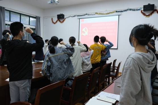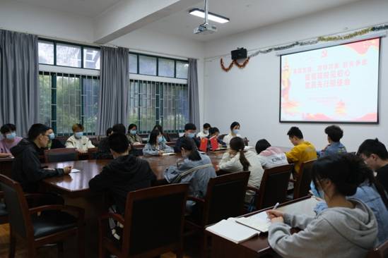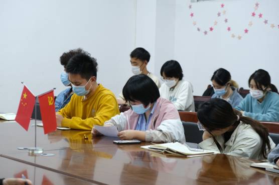 活动由学生党支部书记冯书祥主持,会议中首先集体重温入党誓词,学习党章第五章党的基层组织。会议重点学习传达习近平总书记在3月17日中央政治局常委会会议上关于新冠肺炎疫情防控工作的重要讲话精神,学习教育部高等学校新冠肺炎疫情防控技术方案(第五版),学生党员代表、疫情防控志愿者代表交流分享在假期社会实践和校园疫情防控中的战“疫”故事、见闻及感悟,引导同学们统一思想,坚定信心,克服麻痹思想、厌战情绪、侥幸心理、松劲心态,担起疫情防控责任,落实“四早措施”,自觉遵守属地和学校疫情防控规定。会上,学生党支部书记冯书祥强调,当前仍处于疫情防控的关键时期,每一位学生党员、学生干部都要有大局意识和政治观念,要把疫情防控责任落到实处,坚决贯彻学校部署要求,努力成为疫情防控工作的强大后备力量,做到党员要在关键时刻站的出来,豁得出去,要积极作为、迎难而上,用实际行动诠释作为学生党员的坚毅果敢姿态。