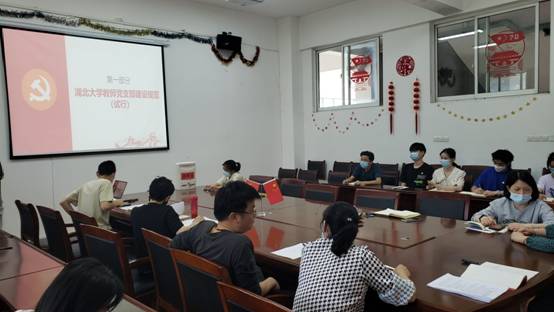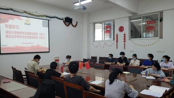 活动中,郭雅纯同志领学了《湖北大学教师党支部建设规范(试行)》(校党组字[2021]15号)文件,从组织力量、队伍建设、基本职责和重点任务、党员教育管理、党内组织生活、工作保障等六个方面进行了全方位解读,指导教师党支部建设坚持以习近平新时代中国特色社会主义思想为指导,坚持社会主义办学方向,落实立德树人根本任务,坚持把旗帜鲜明讲政治贯穿党支部工作和教育教学、科学研究、管理服务工作全过程,弓导教师党员自觉树立正确的政治向、价值取向、学术导向,不断增强“四个意识",定“四个自信”,坚决做到"两个维护"。着力实施“双带头人”培育工程,深入推进高校教师党支部建设的制度化、规范化、科学化,切实发挥教师党支部在思想政治教育工作中的主体作用。