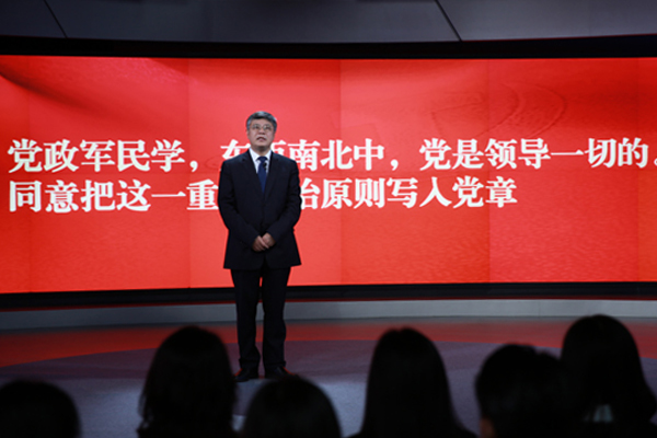 谢春涛:这次修改党章,把“党政军民学,东西南北中,党是领导一切的”这样的重要政治判断写进去了。这可以说是总结了我们过去加强党的领导的成功经验。我们今天看得越来越清楚,党的领导、党的全面领导对于我们党,对于我们国家太重要了,只有党坚强有力,只有党的领导落实到各方面,我们国家才能团结统一,我们的人民才能高度凝聚起来,我们才能取得一个又一个重大成就。