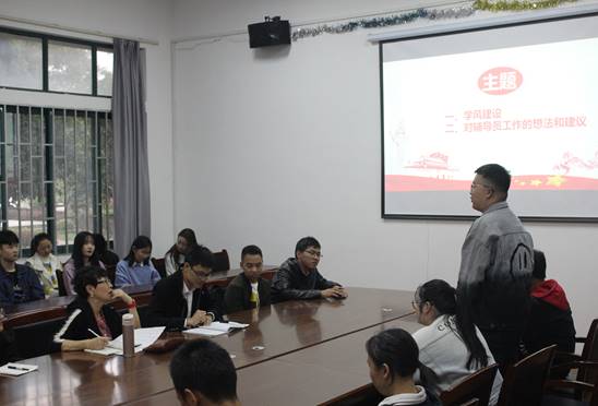bat365官方网站于 2019年11月13日下午15:30在知化楼101举办了以《不忘初心 牢记使命》为主题的学生调研座谈会,调研的主题是1、学生学风建设情况。2、学生管理工作成效。本次会议旨在促进bat365优良学风的形成,优化学生学习环境,及时把握学生的思想动态。