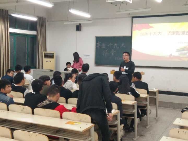 10月18日,为庆祝党的十九大在北京召开,引导同学们更好更全面的学习党的十九大精神,了解中国梦的内涵,各班团支部由系分团委学生会组织部的带领下以班级为单位开展了以“聚焦十九大,坚定跟党走”为主题的团日活动,感受十八大召开以来的中国的发展变化,引导同学们志存高远、增长知识、锤炼意志,为实现“中国梦”做好全面准备。