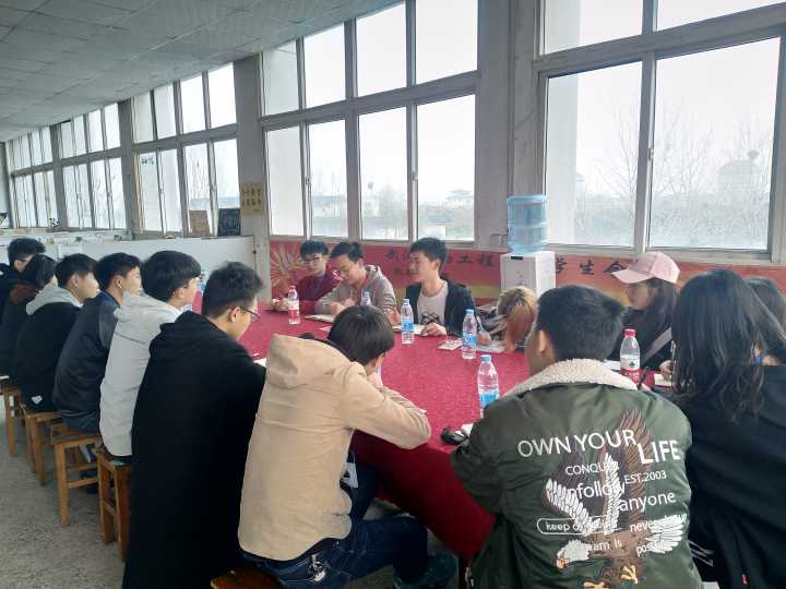 在参观完校区后,两院代表坐在武生院学生会办公室对学生组织的赞助信息、日常管理、学生工作、人员人事、学联改革等问题进行了交流讨论。会议中讨论最激烈的是人员人事中的成员流失和成员状态,武生院的学生代表在会上讲到他们人员流失最为严重的是刚开第一次部门例会前后、各项活动过后、寒假结束后这3个时期,但我系在这个方面工作进行的较好截止目前为止我系分团委学生会共退离人员4人,退离率低于5%;在成员状态方面,武生院代表讲到部分学生干部存在不作为、逃避、退让等情况,这个方面我系分团委学生会做的也较好,虽然我系成员在工作能力方面有所欠缺但是大家都一直在努力从未停下过。会后两院代表进行了代表聚餐和饭后闲聊。