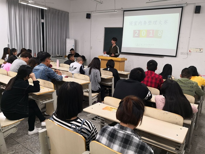 为进一步发挥学生公寓“环境育人”的积极作用,引导同学们营造安全、干净、整洁、温馨的宿舍卫生环境和个人卫生环境,同时响应学院号召,粮食与食品工程系于4约26日晚组织全体寝室长召开寝室内务整理大赛动员大会。