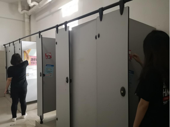 在辅导员简单指导后,大伙儿撸起袖子干了起来。期间两边厕所的“牛皮癣”是重灾区,虽然除胶剂气味大,厕所里的小广告陈旧难刮,但是在同学们不怕苦不怕累的认真态度下也全部清除干净。
