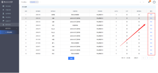 第三步:登录完成后,进入个人主页点击右上角“学生评价”,选择本次教学考评活动,选择老师后进行评价。