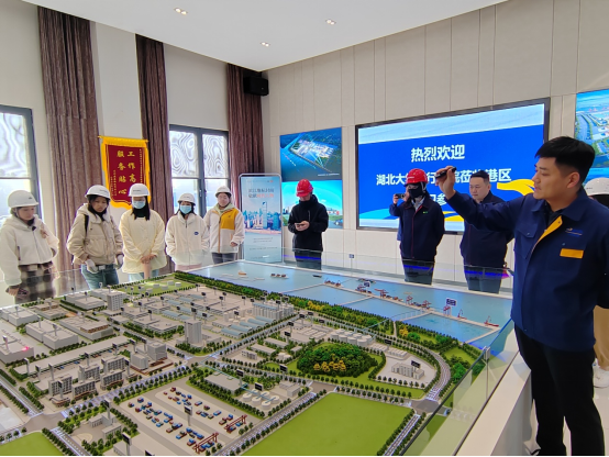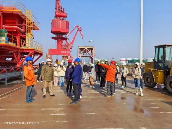 在金控港口发展有限公司,同学们实地参观了5000吨级粮食专用泊位,在工作人员介绍下,深入了解国家粮食现代物流(武汉)基地规划、建设情况。