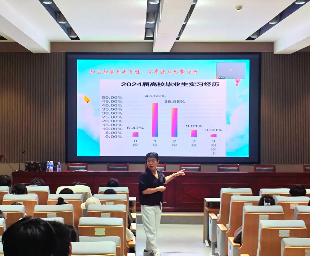讲座中,祝方清书记带领大家分析了当前的就业形势,强调了生涯规划对个人成长与发展的重要性。向同学们介绍了国家相关就业创业优惠扶持政策和基层就业项目,体现了党和国家对大学毕业生就业的高度重视,提醒同学们积极关注国家政策、把握机遇,为自己的未来创造无限可能性。为同学们推荐了国家大学生就业服务平台、国聘网等获取求职就业和政策信息的有效平台。